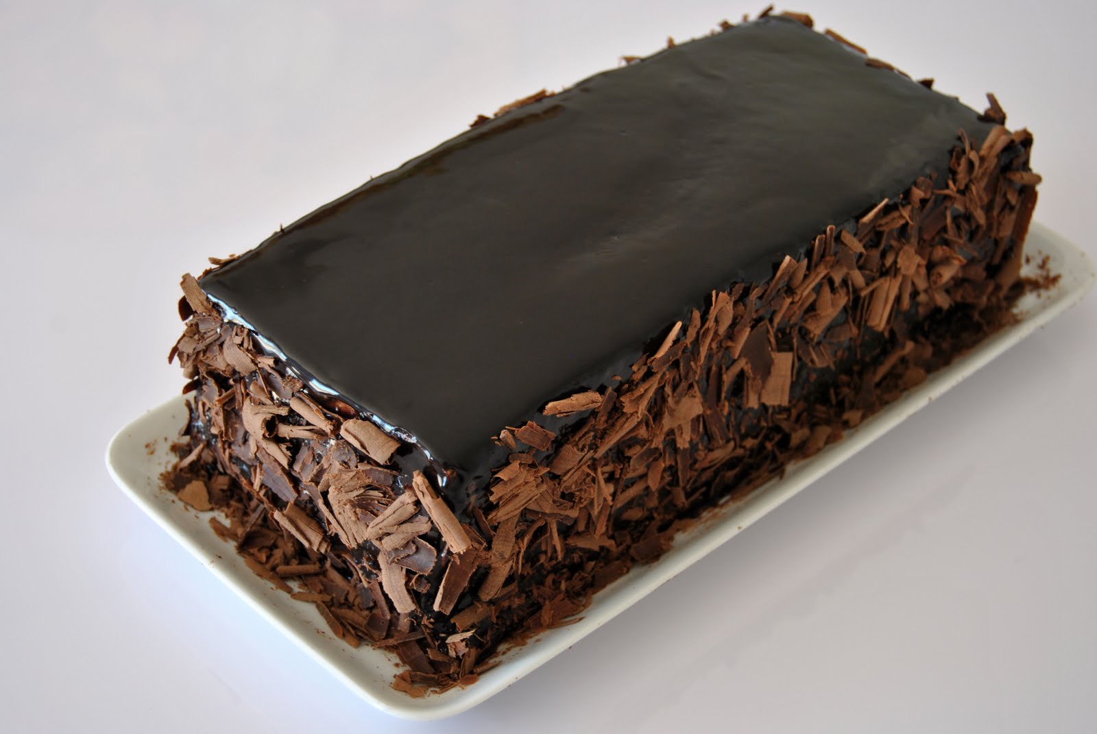 Preparazione per la torta: montare le uova con lo zucchero. Aggiungere l’acqua e l’olio, la vaniglia e le polveri setacciate. Io ho utilizzato una teglia quadrata di 28 cm e 4 cm di altezza. Una volta raffreddata l’ho tagliata in due parti sovrapponendonele per creare il mattoncino. Tra una parte e l’altra spennellare con bagna a piacere e farcire con la chantilly. Quindi colare sul dolce la copertura a specchio e decorare con riccioli di cioccolato (che personalmente ho ottenuto raschiando il cioccolato con un pelapatate).