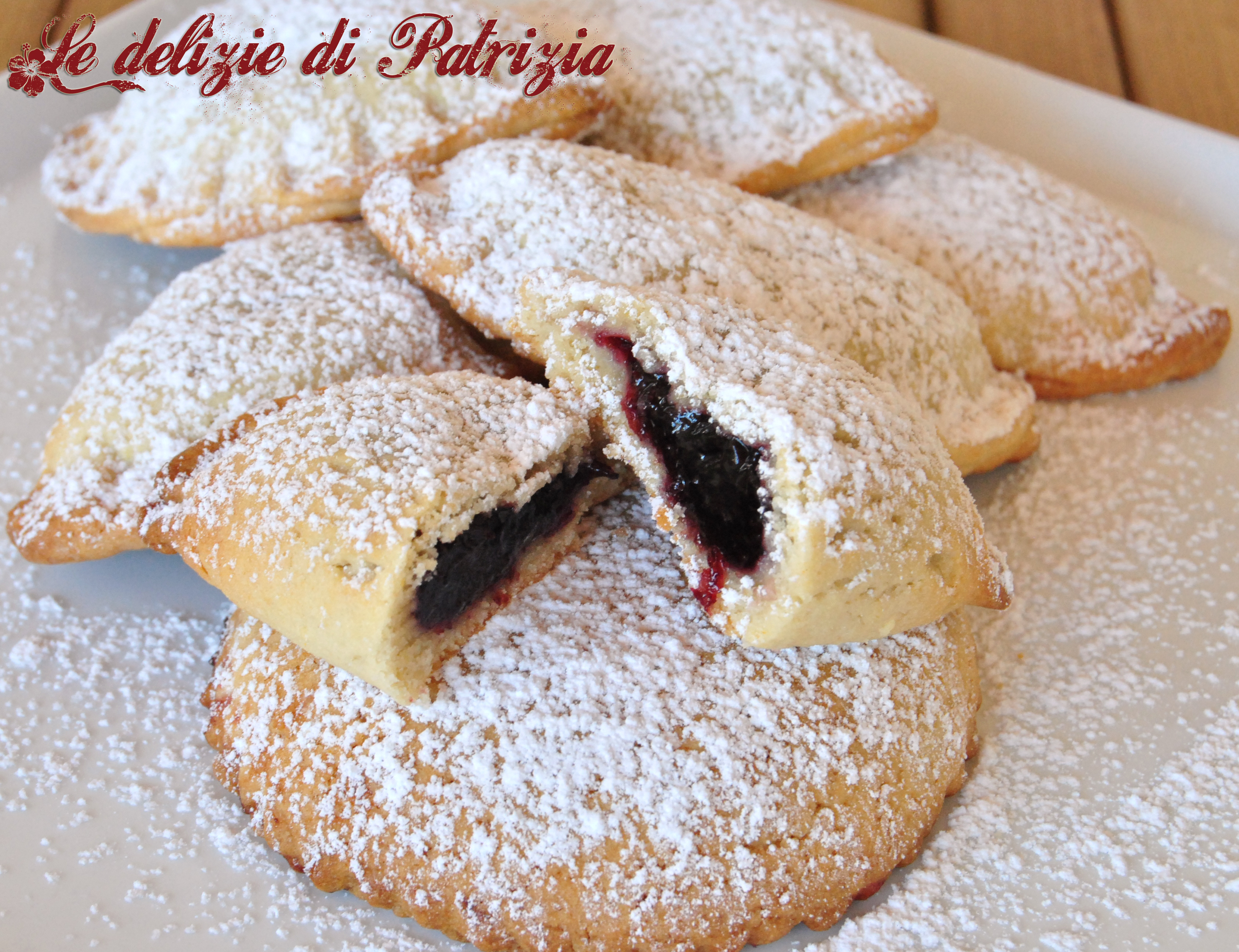 Preparazione: preparare la frolla amalgamando per bene tutti gli ingredienti (tranne la marmellata) e riporla in frigo per un’oretta. Preriscaldare il forno a 160°. Stendere la pasta sul piano di lavoro e tagliare dei cerchi della misura da voi desiderata, quindi farcirli nel centro con la marmellata e richiuderli premendo su tutto il bordo (se non avete il tagliaravioli usate una forchetta per sigillare i bordi). Disporli sulla placca foderata di carta forno ed infornare per 10-15 minuti. Una volta freddi spolverare con dello zucchero a velo.