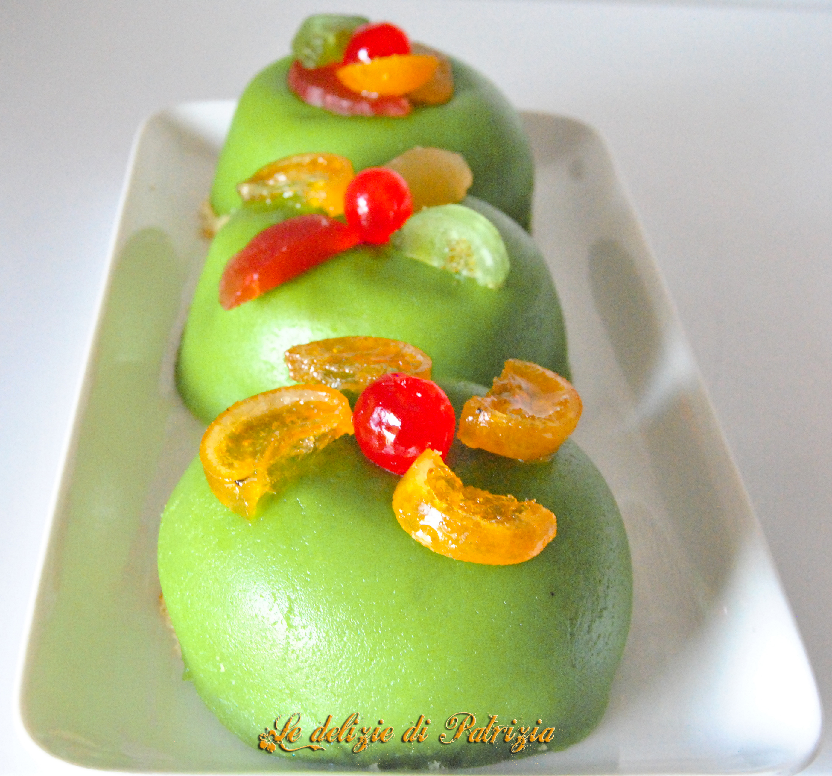 Preparazione: setacciare la ricotta, aggiungere lo zucchero ed amalgamare con cura, unire quindi i canditi e le gocce di cioccolato. Riporre la farcia in frigo fino al momento dell’utilizzo. Stendere sottilmente la pasta di mandorla e, aiutandovi con un coppa pasta, foderare con essa tutti gli stampini avendo cura di rifilare con un coltello i bordi per eliminare la pasta in eccesso. Tagliare il pan di spagna a strisce sottili e sovrapporle alla pasta di mandorle facendolo aderire per bene. Spennellarlo con la bagna e riporre le cupolette in frigo per mezz’ora. Trascorso il tempo di riposo riempire le cupolette con la farcia ed infine chiuderle con un cerchio di pan di spagna spennellato di bagna. Lasciarle riposare in frigo per un paio d’ore prima di sformarle e decorarle con la frutta candita.