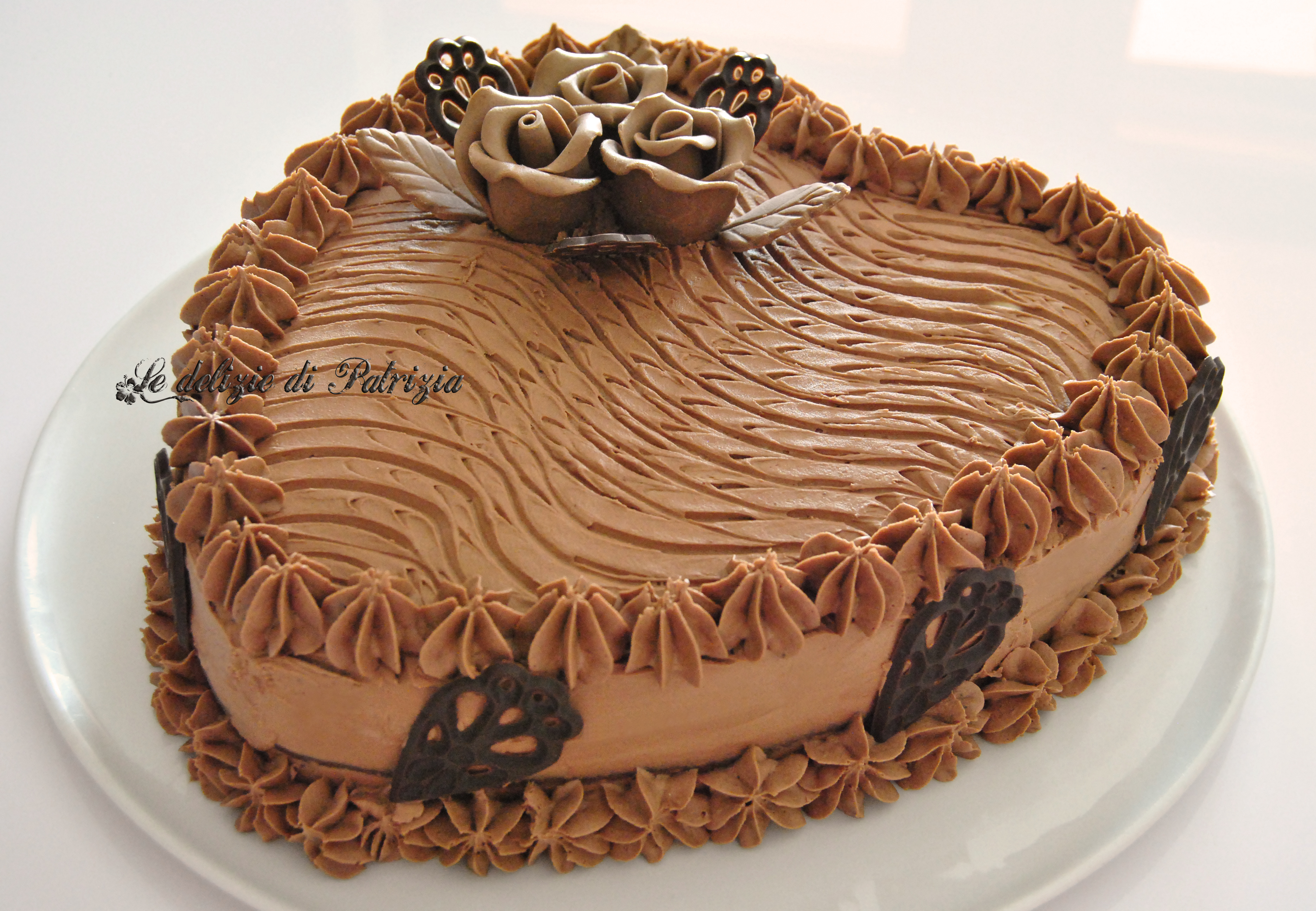 Dividere il cuore di pds in due metà, spennellare con la bagna, sotto e sopra quindi farcire con la crema al burro dentro e fuori. Decorare a piacere. Toglierla dal frigo un paio d’ore prima del consumo.