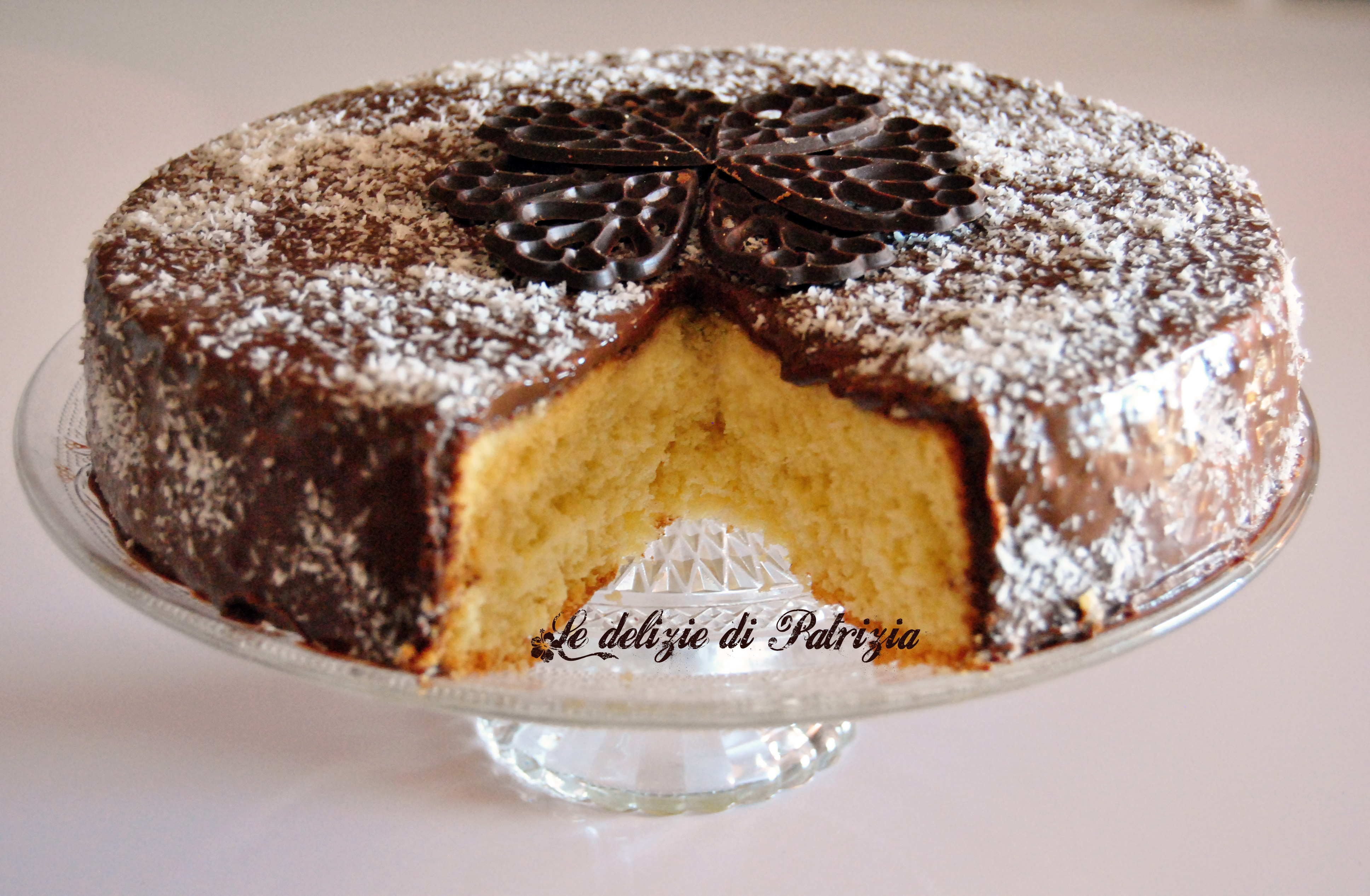 Pan di spagna al cocco con glassa al cioccolato