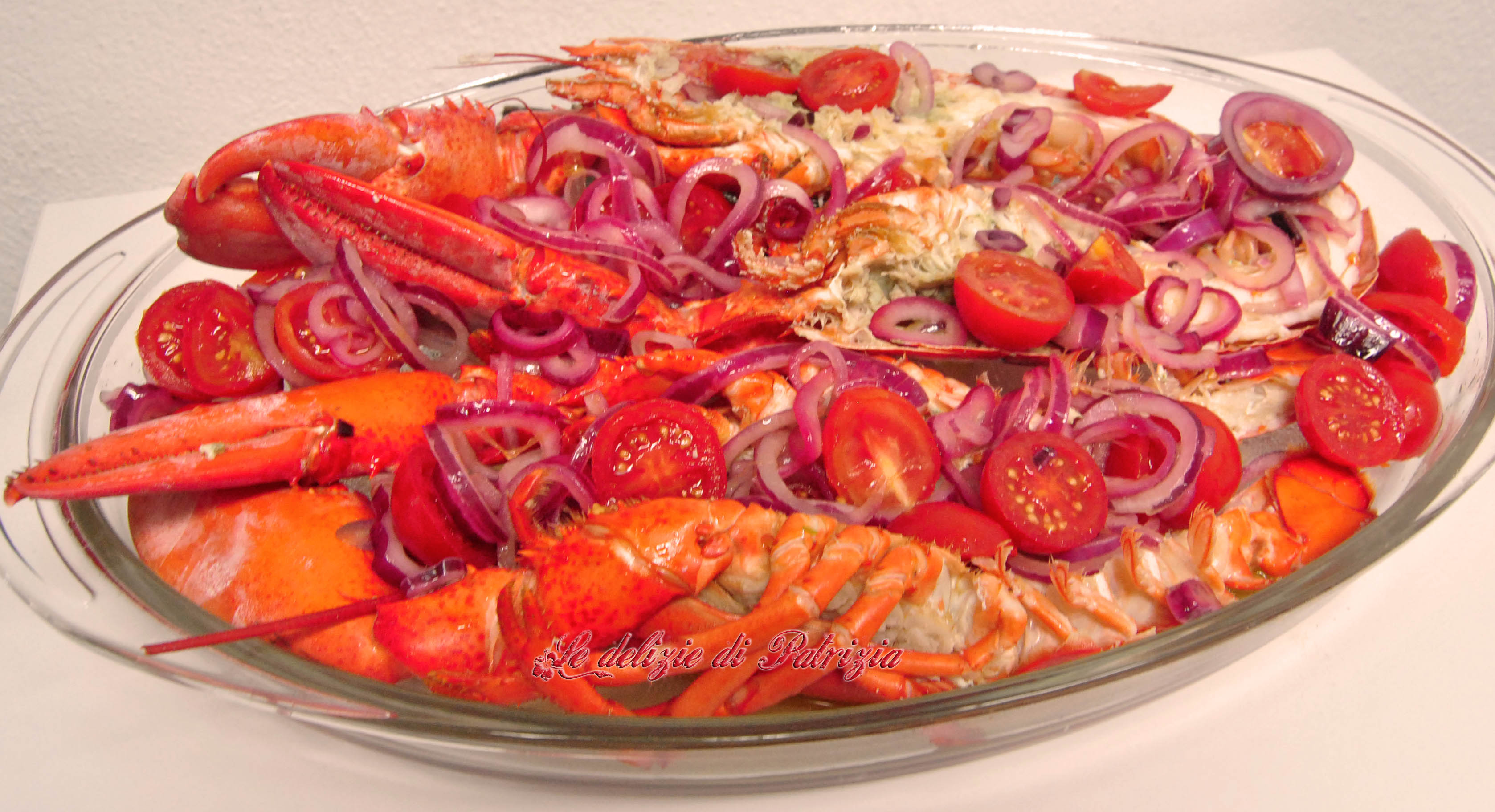 Portare ad ebollizione dell’acqua leggermente salata in un capiente pentolone. Immergervi gli astici congelati e, non appena l’acqua riprende il bollore, fate cuocere per dieci minuti. Estrarre dalla pentola e lasciar raffreddare per una mezzora.  Su un tagliere ben fermo ed utilizzando un coltello bello affilato, incidere il carapace tagliando in senso verticale per tutta la lunghezza, ottenendo due metà perfettamente uguali. Eliminare le interiora e disporre su un piatto di portata bello capiente. Scolare ed asciugare con carta assorbente gli anelli di cipolla quindi condirla con abbondante olio d’oliva, sale e limone. Versare questo saporito condimento sugli astici e sigillare il tutto con pellicola alimentare fino al momento del servizio./pre>