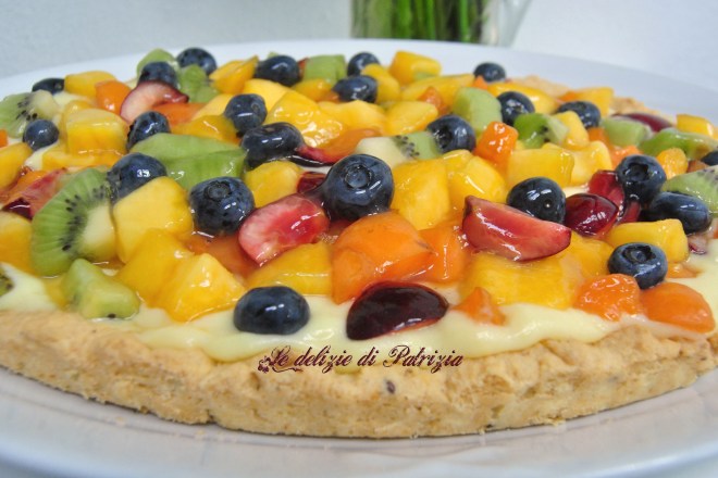 Preparazione: impastare tutti gli ingredienti fino ad ottenere un panetto liscio e ben amalgamato. Avvolgere in pellicola e mettere a riposare un’oretta in frigo. Sistemare (aiutandosi con le dita infarinate) la frolla in una teglia furba (28 cm di diametro) ed infornare in preriscaldato ventilato a 170° per 15-20 minuti. Una volta raffreddata la base, farcire la superficie con la crema pasticcera, decorare con a macedonia di frutta quindi spennellare con la gelatina neutra.